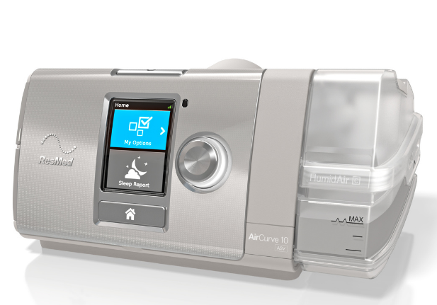 Urządzenie AirCurve™ 10 VAUTO S z nawilżaczem i podgrzewaną rurą do terapii bezdechu sennego i niewydolności oddechowej ResMed
